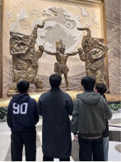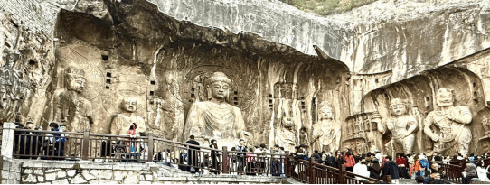 进入洛阳段行程,团队以“历史空间的当代转译”为核心展开调研:在白马寺,观察传统寺院建筑的轴线布局与环境共生关系;于龙门石窟,分析石刻艺术与山体空间的融合策略;古墓博物馆中,老师们带领学生们观察古代墓葬建筑的形制、装饰纹样,探讨历史空间元素在现代环境设计中的活化方式;洛邑古城则成为“非遗文化+文旅空间”的实践样本,学生们实地考察古城街巷的业态规划、非遗工坊的空间适配性,思考传统肌理与现代消费场景的平衡设计。