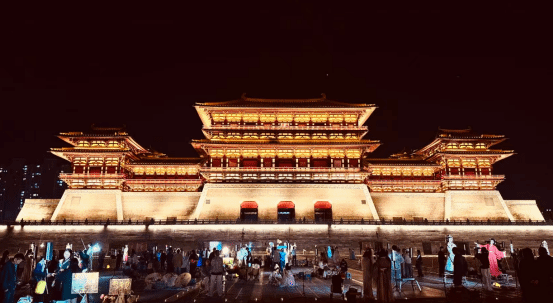 下午,师生走进二里头夏都遗址博物馆,早期文明的抽象符号引发同学们思考。当晚,应天门灯光秀如期上演,朱红城墙与鎏金兽首在光影中流转,同学们架起三脚架尝试延时摄影,还通过手机 APP 实时测试夜景调色参数,沉浸式体验 “古今光影对话”。