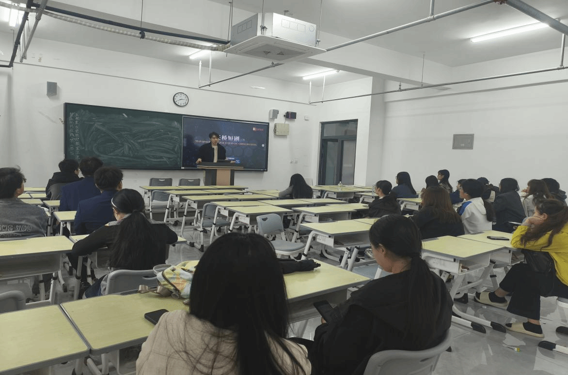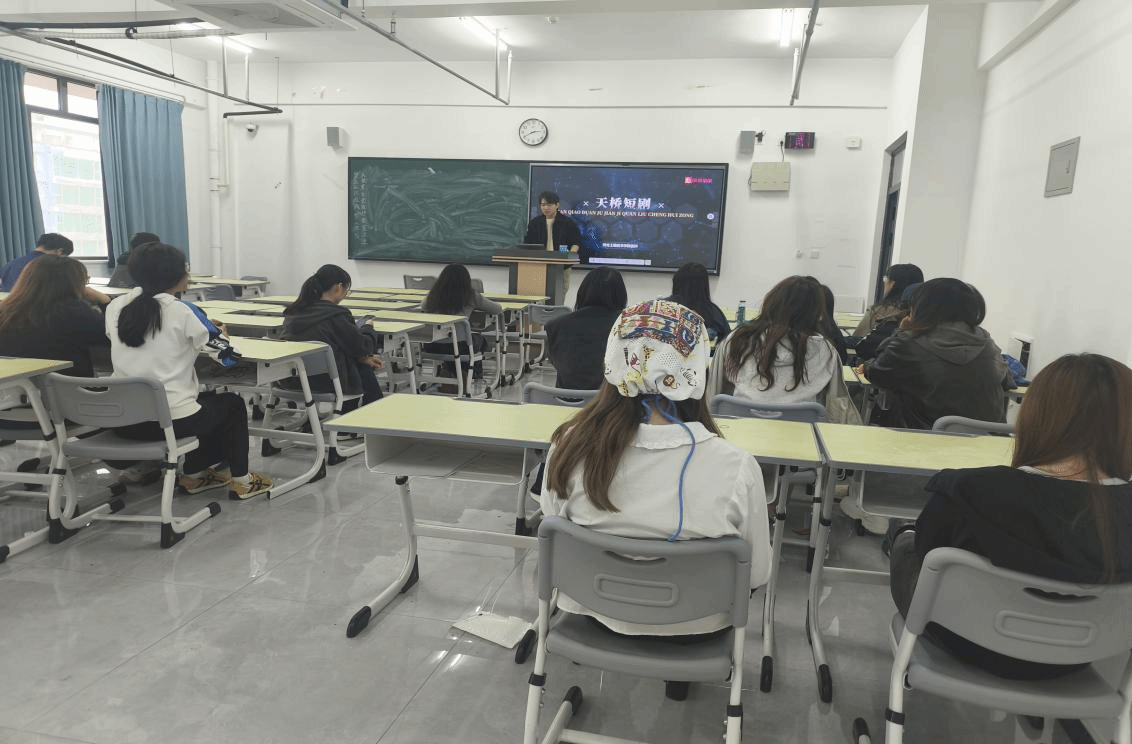 天桥短剧公司代表首先进行宣讲,从公司发展历程、企业文化,到业务范围、团队构成及未来规划,全方位展示企业风貌,让学生们深入了解短剧行业及企业实力。随后的岗位解析环节,企业代表聚焦剪辑、调色两大核心岗位,详细讲解岗位职责、任职要求、晋升空间与薪资福利,针对学生关心的职业发展问题逐一说明,消除学生对岗位的认知盲区。在互动问答环节,学生们踊跃提问,围绕公司发展前景、岗位工作细节、职业成长路径等展开交流,企业代表耐心细致的解答,进一步加深了学生对行业和岗位的理解。