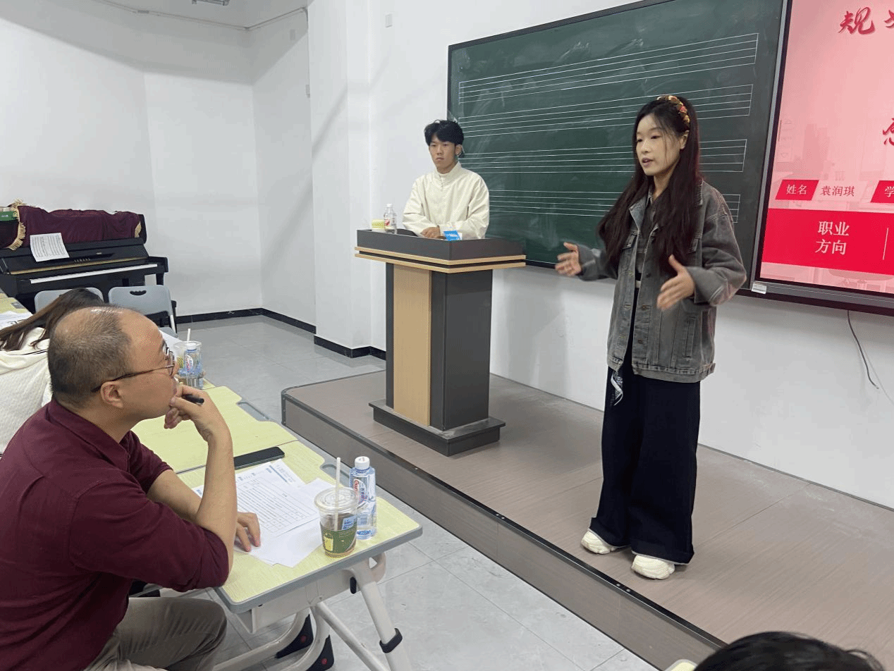 比赛分为个人展示与答辩两个环节。选手们结合专业特色与个人职业规划,精心准备,各展风采。通过PPT演示、情景模拟等丰富多样的形式,生动呈现了职业目标设定、发展路径规划及行动实施方案。设计专业学生以“非遗文化传承者”为方向,深入剖析传统艺术在现代社会的困境与机遇,展示如何将传统元素巧妙融入现代设计,让古老文化焕发新生;传媒专业选手则聚焦新媒体领域,提出“短视频内容创作者”的成长路径,从账号定位、内容创作到运营推广,规划细致入微。