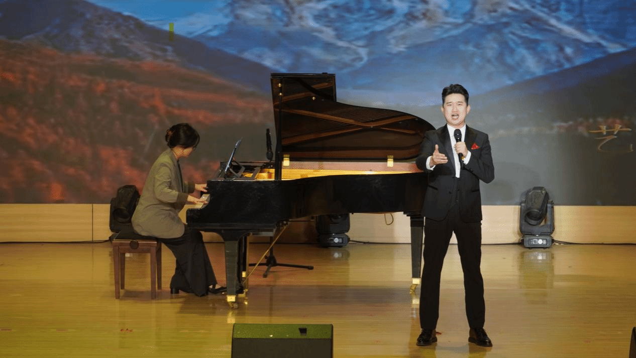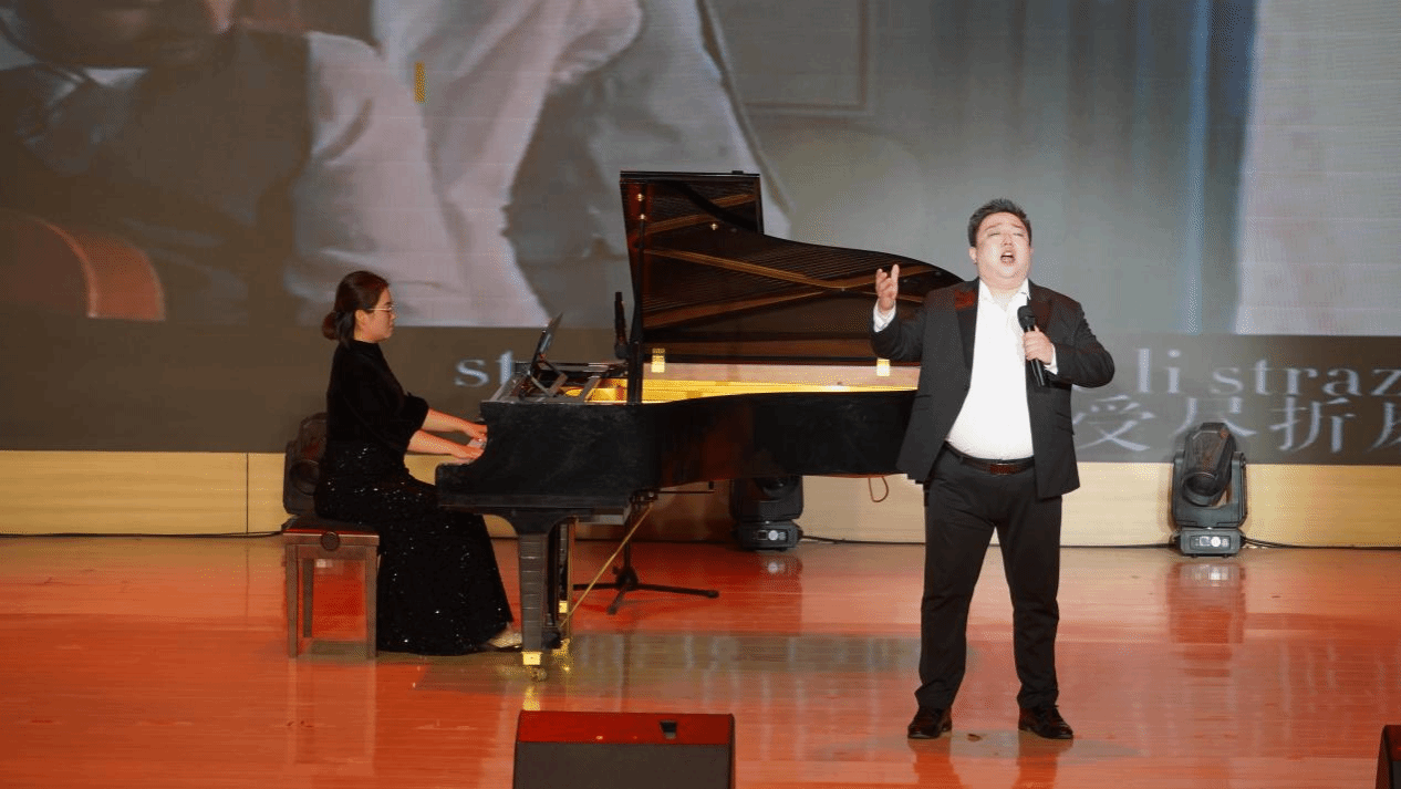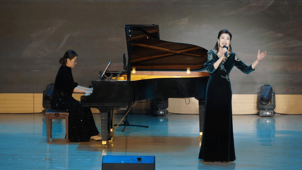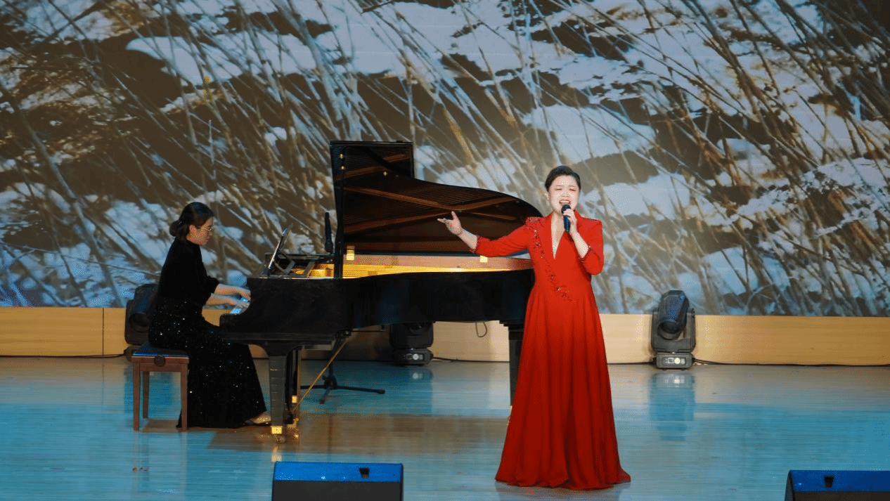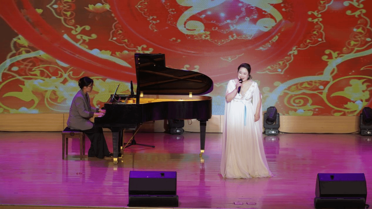 在声乐歌剧系郭艳艳的精彩主持下,演出在开场舞《云歌》的优美旋律与灵动舞姿中正式拉开帷幕。古筝合奏《战台风》气势磅礴,展现了三名演奏教师的精湛技艺;《我的深情为你守候》《爱永在》等声乐作品情感真挚,打动人心。值得一提的是,本次演出阵容强大,参演教师多为国家级、省级专业赛事获奖者。金钟奖得主李晨、夏天、王一硕、丰泽雪等教师的精彩表演,充分展示了学院的专业水准。舞蹈《易安醉》以独特的创意演绎了宋代词人李清照的文学意境,赢得阵阵掌声。最后,全体教师合唱《我爱你中国》,将现场气氛推向高潮。
