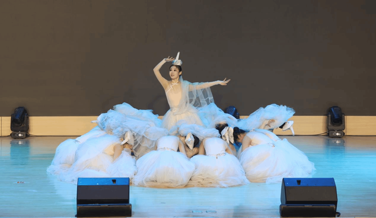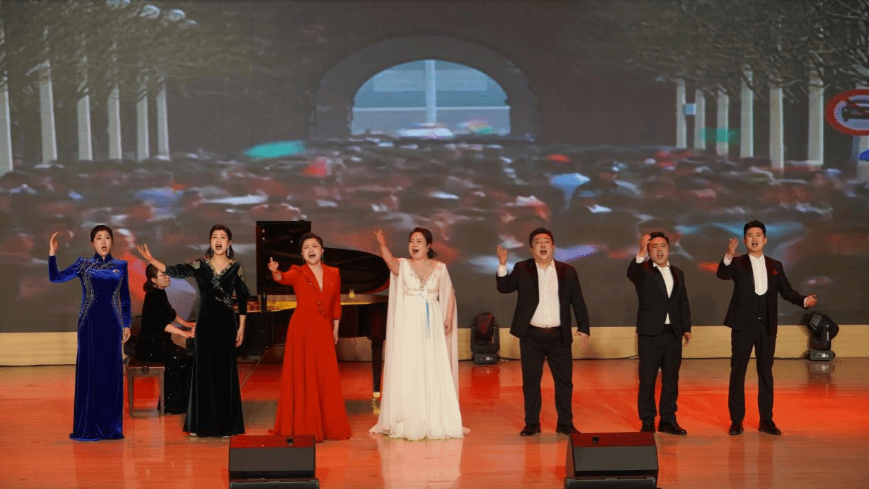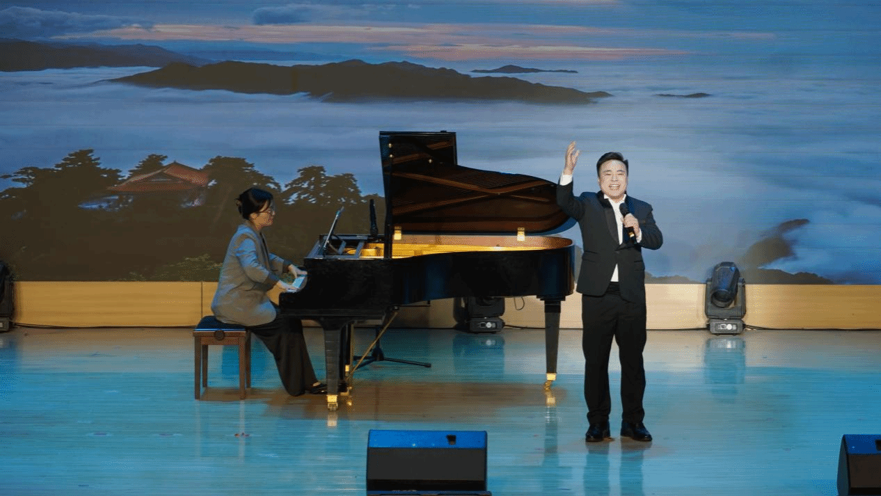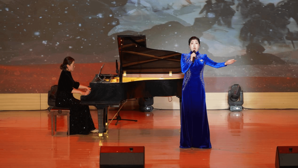 在声乐歌剧系郭艳艳的精彩主持下,演出在开场舞《云歌》的优美旋律与灵动舞姿中正式拉开帷幕。古筝合奏《战台风》气势磅礴,展现了三名演奏教师的精湛技艺;《我的深情为你守候》《爱永在》等声乐作品情感真挚,打动人心。值得一提的是,本次演出阵容强大,参演教师多为国家级、省级专业赛事获奖者。金钟奖得主李晨、夏天、王一硕、丰泽雪等教师的精彩表演,充分展示了学院的专业水准。舞蹈《易安醉》以独特的创意演绎了宋代词人李清照的文学意境,赢得阵阵掌声。最后,全体教师合唱《我爱你中国》,将现场气氛推向高潮。