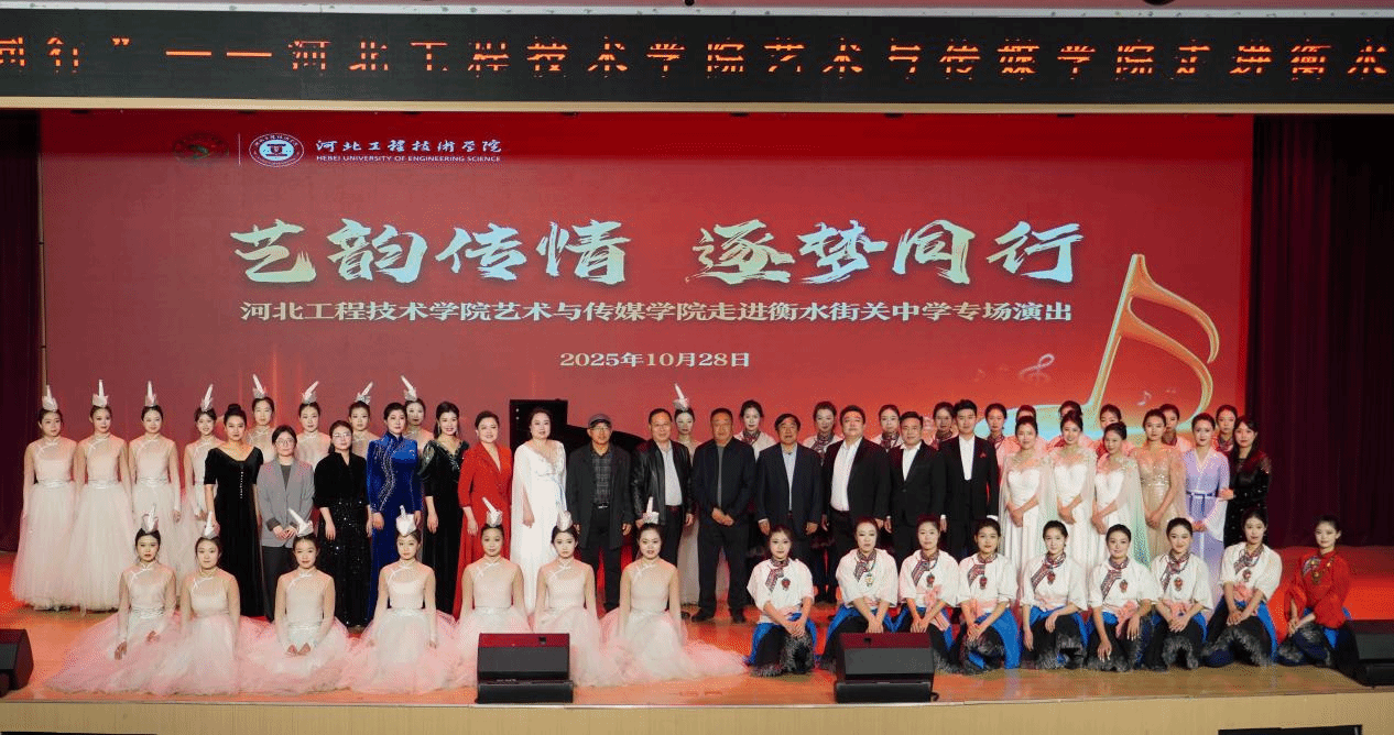 2025年10月8日下午,艺术与传媒学院师生一行赴衡水街关中学,成功举办了以“艺韵传情・逐梦同行”为主题的专场文艺演出。本次活动旨在加强高校与中学的美育交流,以艺术为桥梁传递青春正能量为街关中学的师生们带来了一场精彩纷呈的艺术盛宴,现场气氛热烈,掌声如潮。