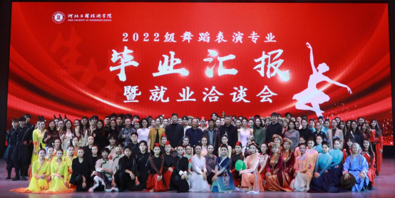 河北省舞蹈家协会、河北省专业院团、省演艺集团、石家庄市民宗局、石家庄青少年宫、兄弟院校的领导和专家、校领导和学院班子成员、50余家用人单位、2022级舞蹈表演专业全体毕业生及部分家长代表共同参加本次毕业汇报综合场演出。
