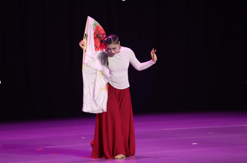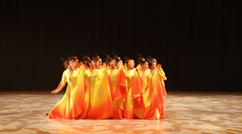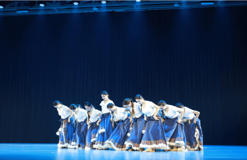 聚焦舞蹈基本功与各民族民间舞的呈现。舞者们以行云流水《古典舞水袖综合组合》拉开帷幕,随后,多元的民族风情渐次绽放,既有维族舞蹈《美丽的阿依汗》中的明媚灵动,藏族舞蹈《心迹》与《天浴》里的虔诚与纯净,也有蒙古族舞蹈《原上草》展现的苍茫豪迈,羌族舞蹈《山语者》以质朴肢体诉说山峦回响,安徽花鼓灯《花灯节》在节奏明快中传递江淮风情,胶州秧歌《生命的河》则于扭转身姿间勾勒出生生不息的民间画卷,傣族舞蹈《春述》中流淌的婉约清丽,意蕴悠长的叙事感使它获得第十二届河北省舞蹈大赛二等奖和河北省第三届高校民族舞蹈大赛三等奖,舞者们以细腻饱满的情感表达,生动传递出不同民间舞蹈的独特韵味与鲜活生命力。