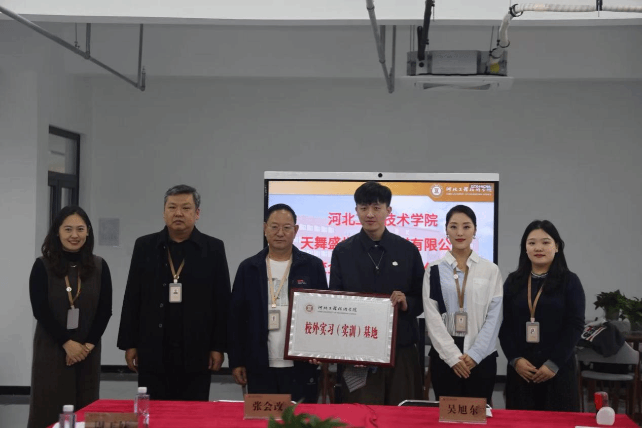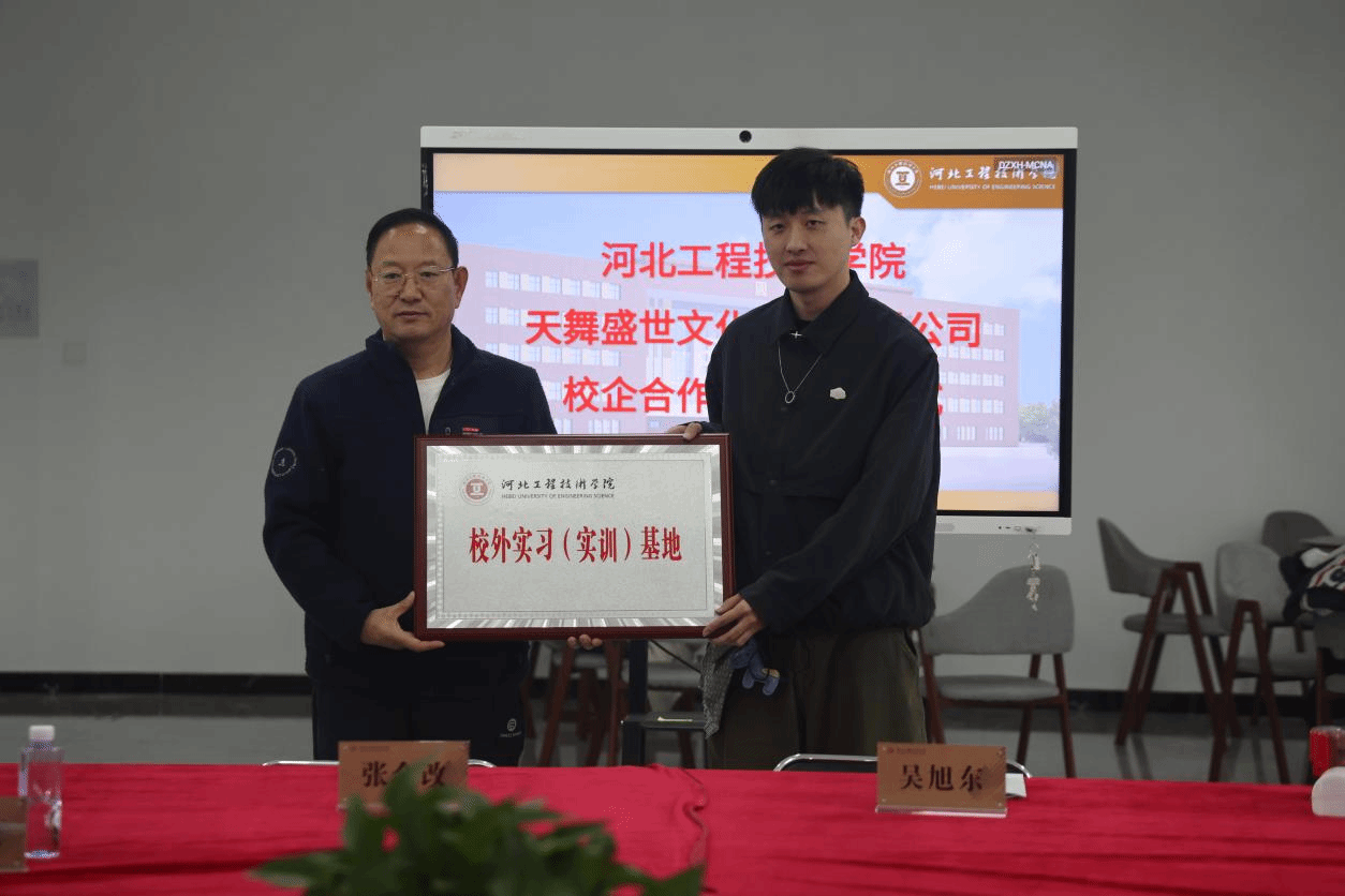 在全体参会人员的共同瞩目与见证下,双方代表郑重签署了校企合作协议,并举行了庄重的授牌仪式,河北工程技术学院授予天津天舞IDG“校外实习实训基地”的牌匾。这一仪式不仅是对双方过往合作的肯定,更是对未来深度合作的期许与承诺。